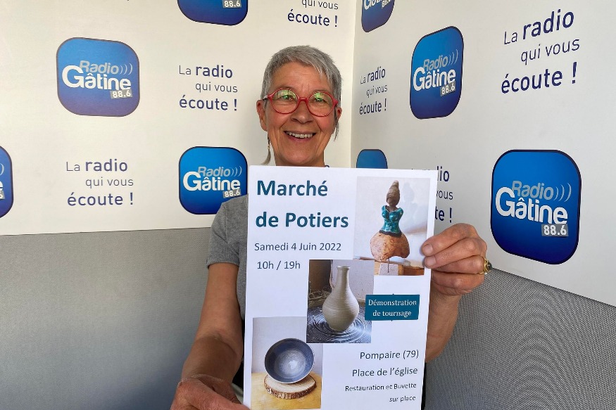 À l’initiative de plusieurs potiers et céramistes du territoire, ce premier marché des potiers dans le département, aura lieu samedi 4 juin de 10h à 19h sur la place de l’Église à Pompaire. Brigitte Imbert, membre de la toute nouvelle association Terre à terre, est venue il y a quelques jours dans nos studios nous présenter ce rendez-vous.