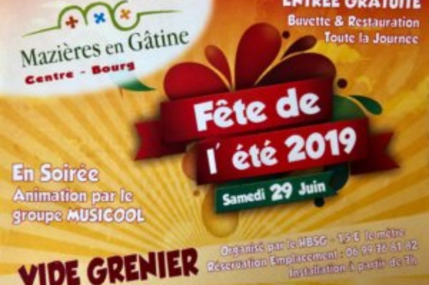 Samedi 29 juin, vous avez rendez-vous dans le centre bourg de Mazières en Gâtine. Et pour cette édition 2019, l’équipe municipale et la dizaine d’associations de la commune vont mettre les petits plats dans les grands. Avec des animations toute la journée, sans oublier le dîner spectacle du soir, organisé par Activ’ ma Gâtine. A noter que pour la deuxième année consécutive, une marche énigmatique est organisée par l’APE des écoles primaires de Mazières. Plus d’infos et inscriptions au 06 77 85 18 54. Si vous souhaitez participer au vide-grenier......