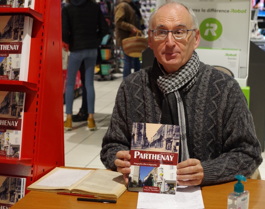 Samedi dernier, Albéric Verdon était dans la galerie commerciale du magasin Hyper U de Parthenay pour une séance de dédicaces de son dernier livre, le tome VI des « Chroniques gâtinelles ». On le rappelle, ce tome VI « Les commerces et l’artisanat de Parthenay d’hier et d’aujourd’hui », a été réalisé en collaboration avec un autre historien local, Yves Drillaud, et fait la part belle à la photographie plutôt qu’aux textes. Albéric Verdon, que Vincent Jabouille a rencontré lors de sa séance de dédicaces samedi dernier, se projette déjà dans le tome 7 qui est bien avancé.