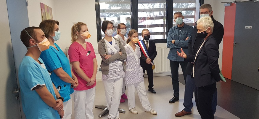 Brigitte Klinkert, ministre déléguée à l’Insertion était à Secondigny ce mardi après-midi. Dans un premier temps pour une rencontre et un échange avec les personnels de l’Ehpad La Vergne et Manga. L’établissement a été fortement touché par la pandémie de Covid-19 en ce début d’année. L’ensemble des résidants ont été diagnostiqués positifs au cours des deux dernières semaines, et 10 décès sont à déplorer parmi eux. Les personnels ne sont pas épargnés non plus, avec 34 salariés positifs sur les 71 que compte l’établissement. Mais l’Ehpad de Secondigny a pu compter sur le soutien de l’association Air services à Parthenay pour pallier au besoin de personnel relatif à cette crise. C’est d’ailleurs tout le sens de la visite de Brigitte Klinkert hier après-midi, montrer le rôle est les solutions que peuvent apporter ce type d’associations intermédiaires pendant la crise sanitaire.