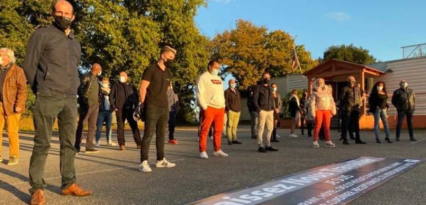 Ils étaient une cinquantaine à s’être donné rendez-vous samedi en fin d’après-midi. Responsables de discothèques des Deux-Sèvres, de bars, de restaurants, intermittents du spectacle et professionnels dans l’événementiel se sont retrouvés devant l’American blues à Parthenay, pour montrer leurs difficultés. Les semaines se suivent et se ressemblent et ils attendent toujours. Comme ses camarades professionnels de la nuit, Laurent Frouin, patron de l’American blues, à l’origine de ce rassemblement, attend le feu vert qui est resté désespérément rouge tout l'été, puis cet automne et toujours sans perspective d'amélioration d’ici la fin de l’année. Les professionnels de la nuit se sentent oubliés par le gouvernement. C’est également le cas de Joy et Jessie, les patrons du club libertin Lina tendu de Mazières-en-Gâtine, que nous avons rencontré samedi. Reportage.