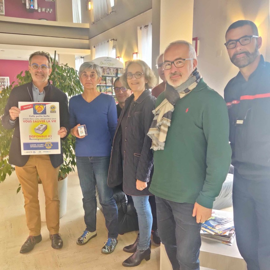 Cette boite sera placée dans le réfrigérateur et fournie avec un autocollant à coller dans un endroit bien visible dans la maison. Les explications avec Brigitte, présidente du Lions Clubs de Parthenay, et Sébastien Dupuis, chef de santé du centre de secours de Parthenay.