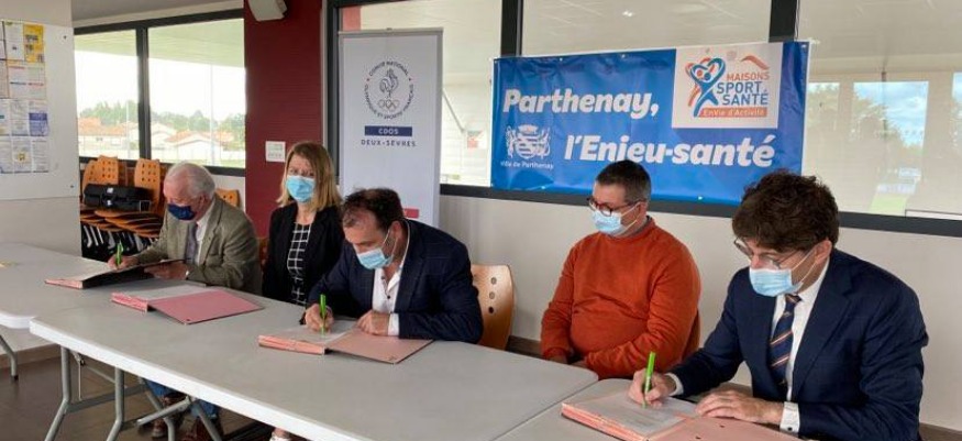 En avril dernier, la Ville de Parthenay a été labellisée Maison sport santé à la suite d’un appel à projet du ministère des Solidarités et de la Santé et du ministère des Sports. Cette reconnaissance intervient dans le cadre du sport sur ordonnance. Désormais, la Maison sport santé aura pignon sur rue au parc des sports L’Enjeu. Jeudi 8 juillet, c’était jour de signature officielle de la convention pour le sport santé, entre la ville de Parthenay, le comité départemental olympique et sportif des Deux-Sèvres (le CDOS) et Bruno Faulconnier directeur du Centre Hospitalier Nord Deux-Sèvres et du CH de Niort, président du Groupement Hospitalier du Territoire (le GHT79). Les détails de ce dispositif.
