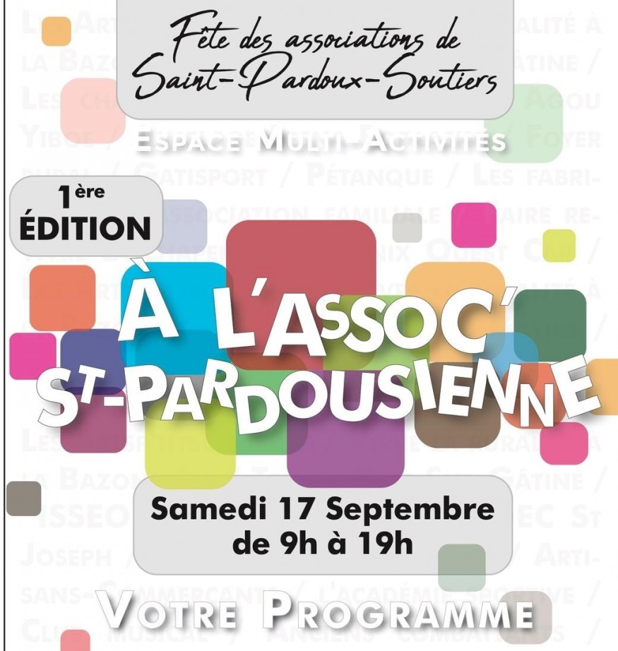 Le rendez-vous est donné sur la commune de Saint-Pardoux Soutiers, la première édition de la fête des associations se déroulera ce vendredi 16 et samedi 17 septembre. Les élus autour du Maire Johann Baranger ont souhaité mettre à l'honneur les associations du secteur, pour que chacun puisse présenter ses activités. Une programmation riche et variée, sur deux jours, pour tous les publics. Joint par téléphone, Martin Moreau, délégué aux associations et projets associatifs, nous détaille cette première édition de A l’Assoc’ Saint-Pardousienne.