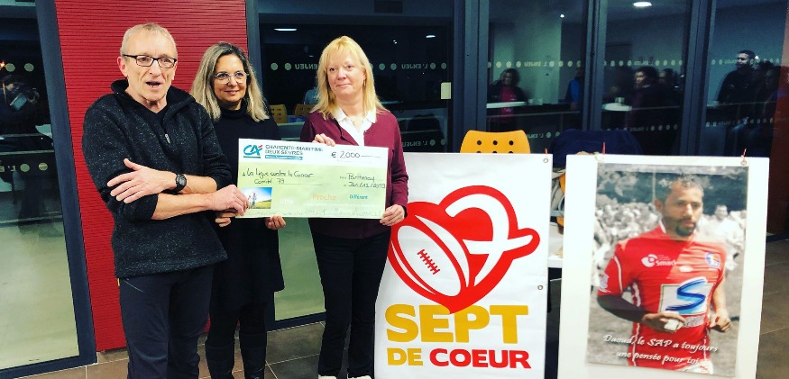 Ambiance conviviale du côté du parc des sports L'Enjeu lundi soir. En effet l'équipe de la jeune association 7 de cœur, autour de son charismatique président Philippe Proust dit PPH, remettait leur premier don à la Ligue contre le cancer. Pas moins de 2 000 euros pour l'antenne des Deux-Sèvres. Pour rappel l'association 7 de cœur, crée en juillet 2018, à l’initiative de Philippe Proust, jeune retraité du service des sports de la communauté de communes Parthenay-Gâtine et de quelques-uns des amis de Daoud Amraoui, ancien joueur et éducateur sportif au Sport athlétique parthenaisien (SAP), qui a marqué de son empreinte le club de rugby local et qui est décédé prématurément il y a 10 ans. Dans notre Balade en Gâtine consacrée au monde associatif de ce jeudi 30 janvier 2020, nous sommes allés à la rencontre du président de 7 de coeur. Entretien.
