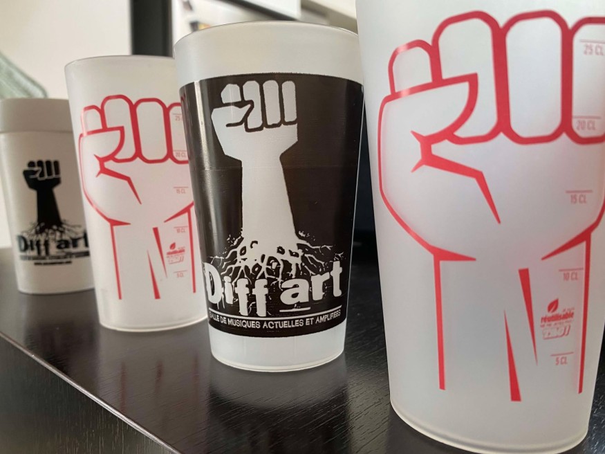 La Salle Diff’Art ne va plus créer de gobelet à son effigie. Habituellement, ils en produisaient 2.000 à l’année, mais ces gobelets s’écoulaient très vite. Une décision forte, pour sensibiliser et responsabiliser son public. « Pour qu’un éco-cup remplisse son rôle écologique face à un gobelet jetable, il faut qu’il soit utilisé à sept reprises » Explique le programmateur de la salle David Sauvignon, ce dont Diff’Art n’était pas sûr pour leurs gobelets.