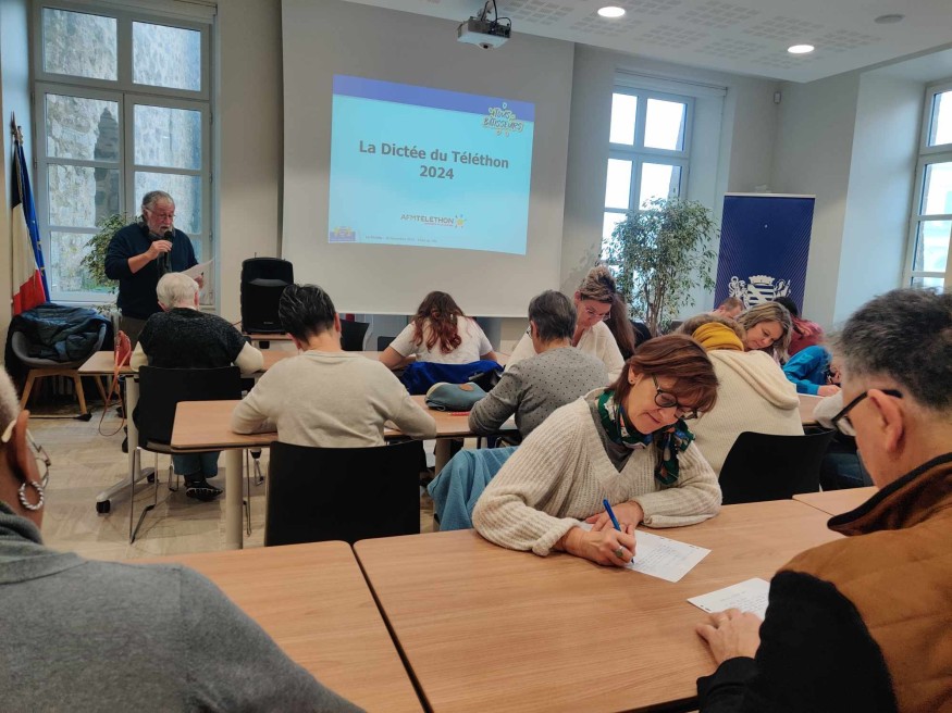 Quatre associations parthenaisiennes participaient à cette dictée : le Comité de Jumelage, la Croche Chœur, l'Escrime Parthenay et l'Étoile Parthenaisienne. Tous, ont payé leur entrée de 5 euros, intégralement reversée au Téléthon. L'occasion de se creuser les méninges, pour la bonne cause. Présente sur place, la coordination Téléthon du Nord-Deux-Sèvres s'est dite satisfaite du nombre d'évènements cette année "il y a 80 organisateurs dans le Nord Deux-Sèvres, on est dans une bonne moyenne par rapport aux autres années" précise l'association.