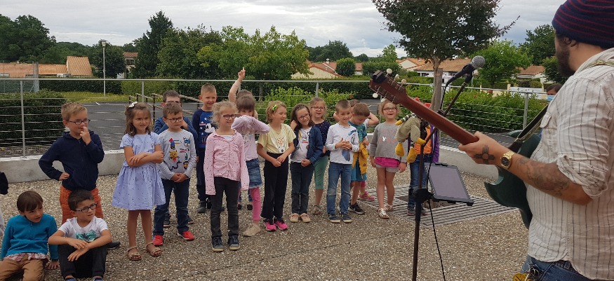 En fin de semaine dernière, Diff’art organisait les restitutions de sa fabrique à chansons « Au son des minots ». Pendant toute l’année scolaire, l’association est intervenue dans l’école Louis-Canis de Pompaire et à celle de Saint-Aubin-le-Cloud, pour des séances d’éveil musical en compagnie de l’auteur-compositeur-interprète Cyril Maguy. À cause du confinement, plusieurs séances ont dû être annulées. Mais des restitutions ont tout de même pu se dérouler jeudi après-midi à Pompaire, pour les Grandes sections, CP, CM1 et CM2 de Louis-Canis, puis vendredi matin pour les CP, CE1 et CE2 de Saint-Aubin.