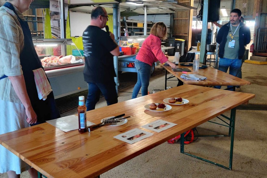 Dans le cadre du Salon de l’Elevage de la Gastronomie qui se tenait tout le week-end au marché aux bestiaux de Parthenay, un concours de gastronomie était organisé ce dimanche. Le principe était simple : deux cuisiniers s’affrontaient sur une entrée froide et deux autres sur un dessert, façon Top Chef. C’était la toute première édition, reportage avec les organisateurs, participant et membre du jury.