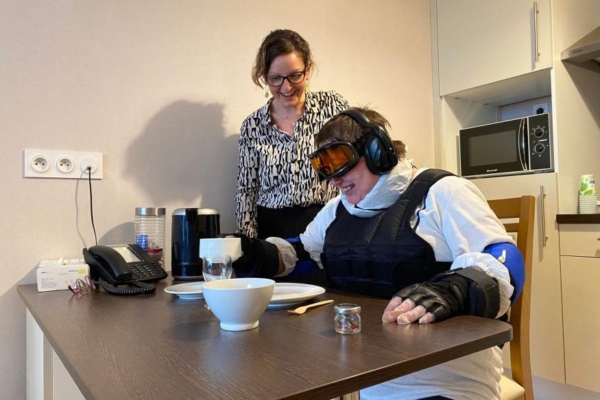 Depuis maintenant quelques semaines, une combinaison est disponible à l'essai à la résidence pour senior de Domitys. Une tenue qui appartient au groupe Domitys et qui se passe de résidence en résidence pour permettre aux professionnels médicaux et paramédicaux ou encore les personnes qui souhaitent essayer de vivre ce que vivent les seniors. Le mercredi 8 mars en fin d'après-midi, plusieurs aidantes de l'ACSAD sont venu tester cette tenue pour découvrir ce que vivent les seniors au quotidien. Explications avec Sophie Le Texier, conseillère commerciale chez Domitys.