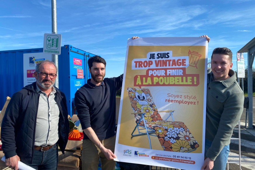 À partir de maintenant et pour les quatre prochaines semaines, vous risquez de tomber sur quelques affiches qui vous interpelleront lorsque vous vous baladerez en Gâtine. Une campagne de communication mettant en scène divers objets a été lancée par la Communauté de Commune pour sensibiliser au réemploi dans le cadre de la PLPDMA - c'est-à-dire le programme local de prévention des déchets ménagers et assimilés qui vise à réduire de 9 % la production de déchets des ménages entre 2021 et 2028. C'est sur le volet du réemploi que s'attarde la campagne, qui s'étalera......