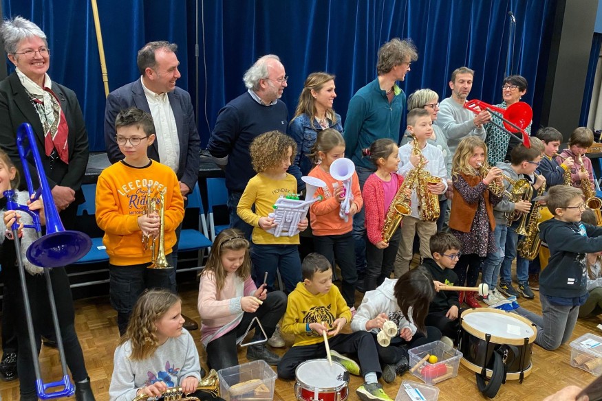 Ce week-end au Foyer Rural de Saint-Pardoux-Soutiers, enfants, parents, professeurs de musique et élus étaient réunis pour une remise officielle d'instruments dans le cadre du projet "Orchestre à l'école". Pendant 3 ans, les élèves scolarisés en CE1 et CE2 à Saint-Pardoux, auront les instruments chez eux et à l'école pour collectivement, développer un orchestre. Un projet en partenariat notamment avec la commune, la CCPG et le CARUG. Un projet ambitieux selon Jérôme Bâcle, vice président de la CCPG en charge des pratiques et apprentissages culturels et sportif.