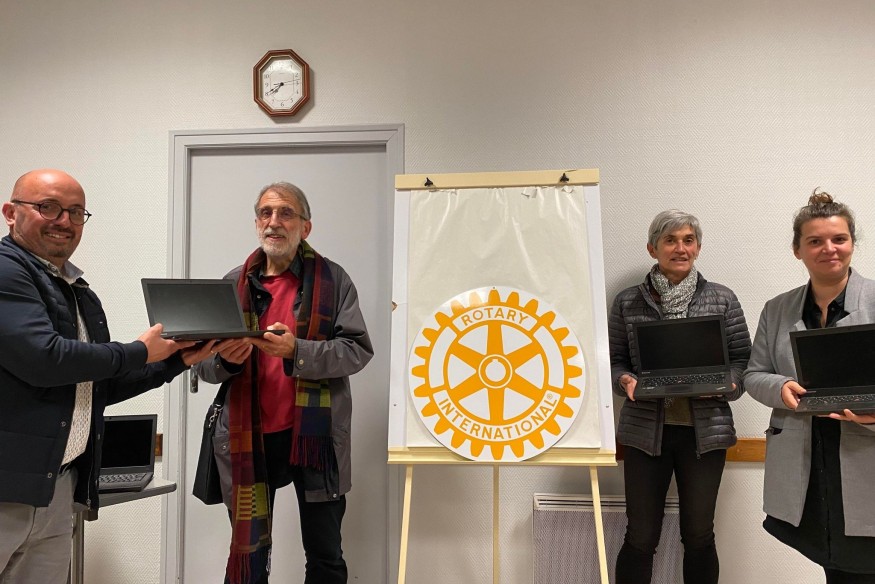 Le lundi 14 novembre, Le Rotary Club a offert 10 ordinateurs à Communiquer, Lire, Écrire, association qui a pour objectif de permettre à des Français et à des étrangers, de maîtriser la langue française, d’acquérir des notions de lecture, d’écriture et de calcul visant à faciliter leur autonomie, leur promotion et leur insertion. C'était au sein de la maison des associations du Tallud que le don s'est fait, et l'association Clé en a profiter pour parler de ces diverses missions aux adhérents du Rotary Club.