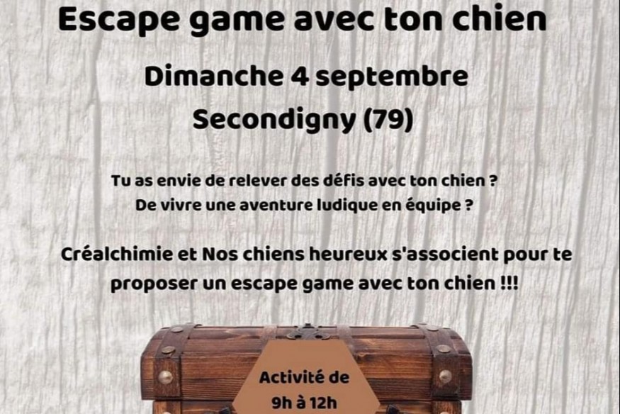 Un concept insolite va prendre vie ce week-end, dimanche matin : un escape dog. Marion Arlot, comportementaliste et éducatrice canin installée à Champdeniers dans sa propre entreprise, « Nos chiens heureux », et François Ducaroy, créalchimiste, créateur d’événements de cohésion dans son entreprise, CréAlchimie se sont réunis pour fonder un escape dog.