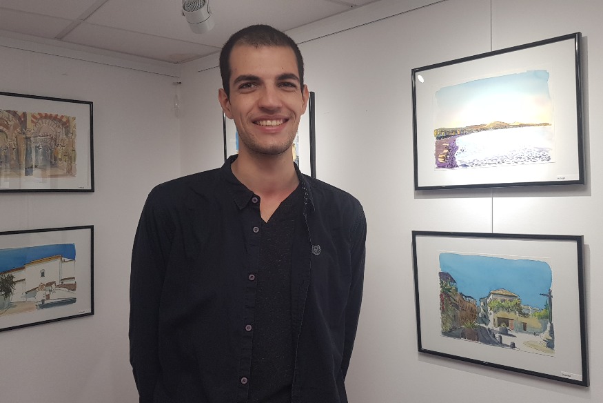 Partir en Espagne, à Bilbao, Malaga ou Grenade, en Italie, à Rome ou au Vatican, ou même en France, à Paris, Bayonne, Collioure, voir Poitiers, tout cela sans quitter Parthenay, c’est possible. Depuis déjà quelques semaines, le dessinateur Christian Corbinus expose ses croquis de voyage à la librairie L’Antidote. Il était présent hier après-midi pour présenter ses aquarelles au public. Interview.