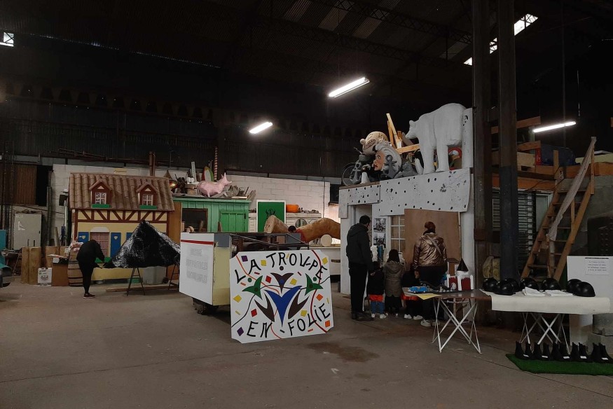 Pour les bénévoles qui montrent leur création en cours, c'est l'occasion de "faire profiter le public", se réjouit Thierry de la Troupe en folie. Marie est venue avec ses deux enfants et, en effet, elle apprécie voir les engins décorés et analyser les décors.