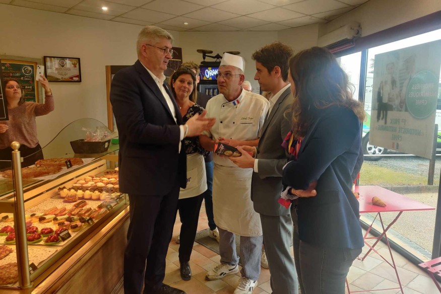 L'ex-Premier ministre, Gabriel Attal, était en visite dans les Deux-Sèvres ce samedi 12 avril. Après un passage sur le marché de Bressuire, Gabriel Attal s'est rendu à la boulangerie du Tallud ou il a abordé les difficultés des boulangers.