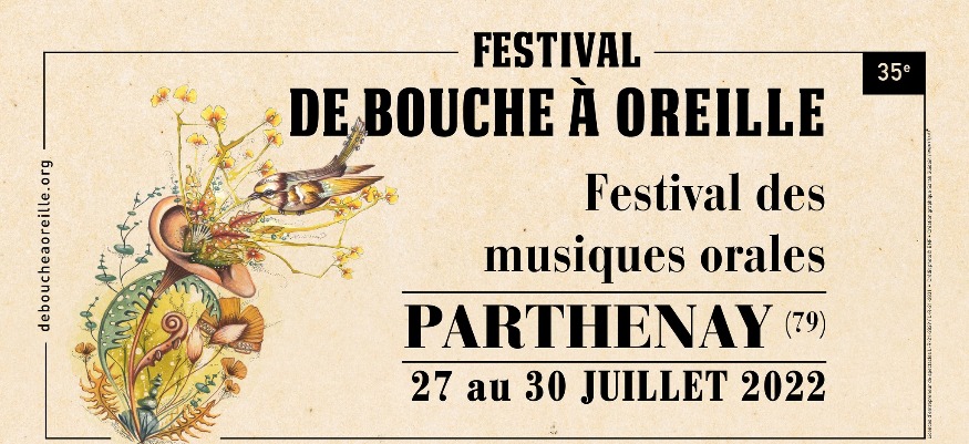 C’est parti pour la 36e édition du festival de musiques orales et traditionnelle De Bouche à oreille, du mercredi 27 au samedi 30 juillet à Parthenay. L’événement organisé par l’UPCP Métive est très attendu par les amateurs de musiques orales, et les organisateurs. Rappelons qu'après plusieurs éditions du côté du jardin des Cordeliers, c’est le grand retour du DBAO sur les berges du Thouet. Retrouvez chaque jour notre chronique spéciale consacré à la programmation ce DBAO 2022, en compagnie de Romain Cheré le co-directeur de l’UPCP Métive.