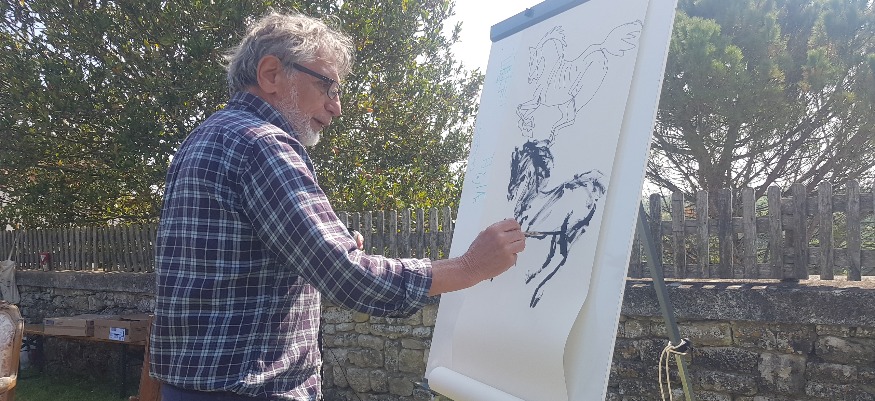 Ces mots, ils ont été prononcés par l’auteur de bande dessinée Edmond Baudoin. Samedi matin, il était l’invité du marché d’Ardin pour un temps d’échange avec le public et pour signer quelques dédicaces. Pendant deux bonnes heures, celui qui vient juste de fêter ses 80 printemps, a conquis son auditoire en traçant un trait, ou plutôt des traits, avec son crayon et son pinceau, entre le dessin et la musique. Avec toujours en toile de fond, l’humanité, qui n’est pas un vain mot en 2022. Rencontre.