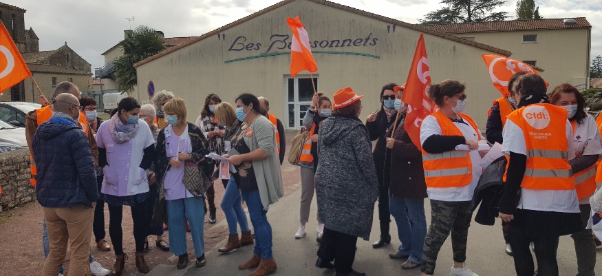 La question écrite sur les pancartes des manifestants était courte mais explicite, « Et nous ? ». À l’appel des sections santé-sociaux et interco de la CFDT des Deux-Sèvres, une cinquantaine d’agents des secteurs du social et du médico-social se sont retrouvés mardi après-midi devant l’Ehpad Les Buissonnets de Béceleuf. Ils ne réclament qu’une seule chose, que leur travail soit pris en considération par le gouvernement après les accords intervenus dans le cadre du Ségur de la santé. Reportage.