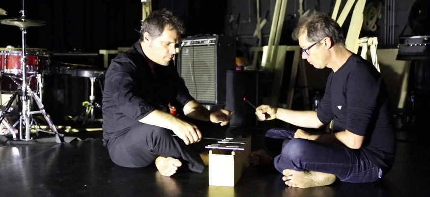 Dans le cadre de sa programmation de fin d’année, autour de l’exposition « Jouez la récup’ », l’UPCP Métive se délocalise au Palais des congrès de Parthenay samedi pour « Miniatures et moulinettes », un spectacle musical et chorégraphique pour le jeune public de la compagnie Maxiphone. Quatre artistes sont sur scène, un danseur musicien, deux musiciens, et une personne chargée des jeux d’éclairage. Tous les quatre étaient en résidence à la Maison des cultures du pays à la fin du mois de septembre. Nous en avons profité pour demander à Christophe Morisset, le metteur en scène, de nous présenter « Miniatures et moulinettes ». Il est accompagné de Fred Pouget, musicien et porteur de ce projet.