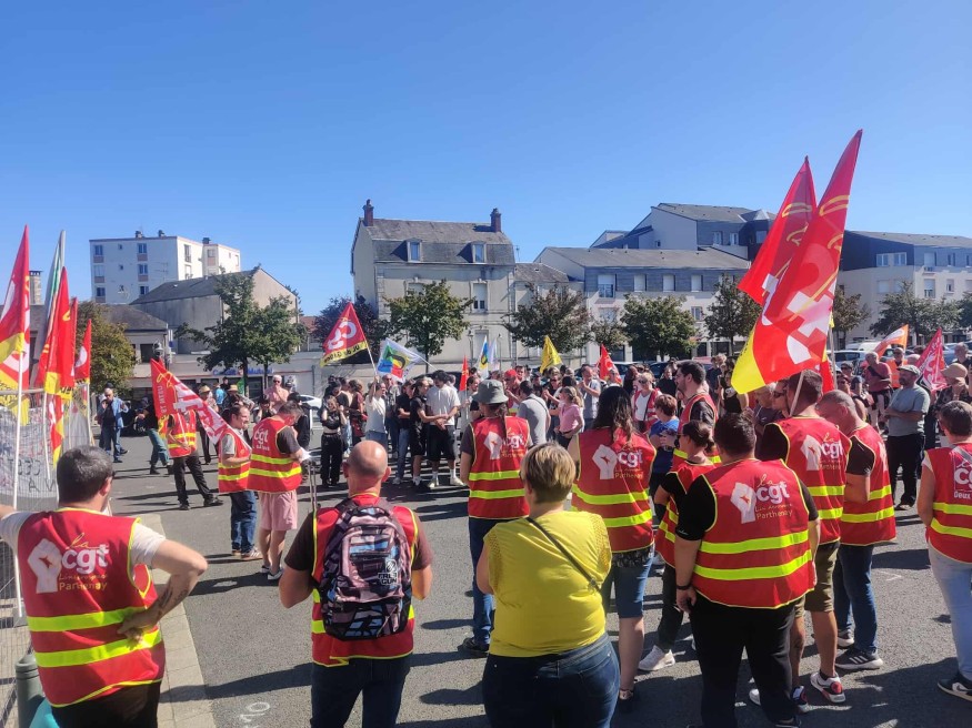 Ils étaient 2000 à Niort, 500 à Thouars, et 300 à Parthenay. L'intersyndicale avait annoncé, depuis le mouvement "bloquons tout" du 10 septembre 2025, une grande journée de mobilisation. Accrochés aux barrières qui entouraient le kiosque de la Place des drapeaux, plusieurs messages étaient affichés sur de grands draps : "L'austérité, c'est terminé, ou septembre sera toute l'année", "L'Argent pour les salaires, pas pour les guerres". Dans le cortège, les drapeaux de la CGT, de la Confédération Paysanne ou de Solidaire flottaient, et parmi les 300 personnes présentes, des professionnels de santé. Pour Stéphane Dumoulin, secrétaire CGT de l’Hôpital Nord Deux-Sèvres, "les services publics partent en lambeaux. L'hôpital est l'un des meilleurs exemples. Le personnel est en souffrance, ils ont des conditions de travail déplorables. Il y a aussi le temps d'échanges que l'on réserve aux patients. Ce temps-là, il n'est plus compté ".