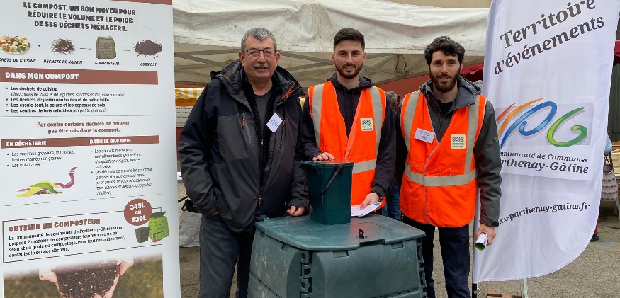 Le retour de l’opération national annuel qui valorise la pratique du compostage de proximité des déchets organiques. Depuis le 26 mars et jusqu'au samedi 9 avril, les services techniques, assainissement et déchets de la communauté de communes Parthenay-Gâtine propose différentes animations autour de la sensibilisation au compostage, des conseils pratiques et autres astuces d’utilisation. Ce mercredi 30 mars au marché de Parthenay, devant les halles, une rencontre avec la population était organisée en vue d'améliorer le tri et inciter à diminuer drastiquement le volume de déchets à enfouir. Le compostage, comment ça marche ? C’est la question que nous avons posé à Marc Dumollard, technicien au service déchets de Parthenay-Gâtine et Marc Langlois, référent compost bénévole pour la collectivité depuis 5 ans. Ecoutez leur réponse.