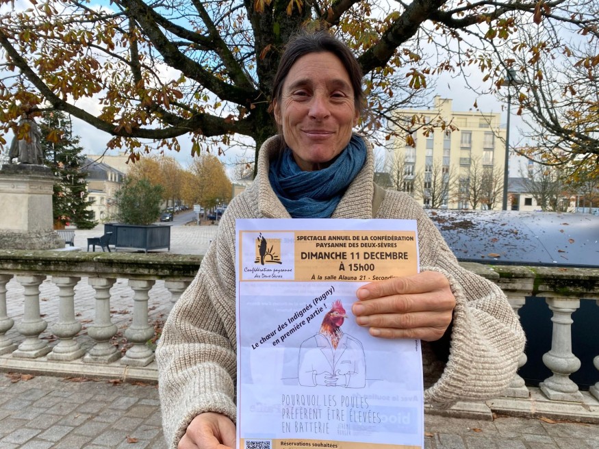 Chaque année, la confédération paysanne des Deux-Sèvres, organise un spectacle. Cette année, le thème est d'actualité avec le spectacle de Jérôme Rouger "Pourquoi les poules préfèrent être élevé en batterie". Un thème important alors que les débats autour de la grippe aviaire persistent. Hélène Bailly, éleveuse de volaille à Mazière et Jean Paul Gobin, également éleveur de volaille à Neuvy-Bouin, nous parle du choix de ce spectacle.