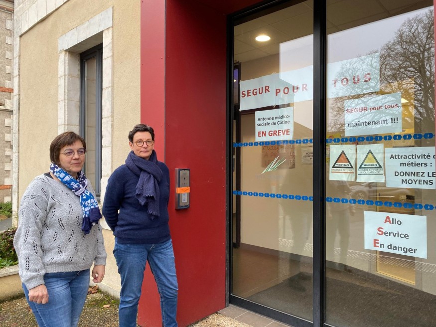 Le 15 décembre, toutes les antennes médico-sociales étaient en grève dans le département des Deux-Sèvres. Si les salariés continuent tout de même d'effectuer leurs tâches, l'ensemble du bâtiment de l'AMS de Parthenay était couvert d'affiches montrant la détresse des professionnels : "Aidez-nous à protéger les enfants" "Allo Service en danger" ou encore "Derrière la vitrine, la misère". Une action forte qu'expliquent Marie-Christine Janicot, cheffe de bureau à l'aide sociale à l'enfance et Blandine Clisson, cheffe de bureau à l'action sociale généraliste. Reportage.