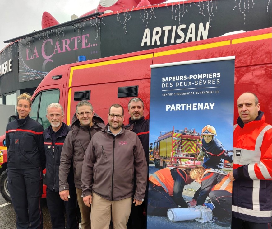 Vendredi après-midi, les sapeurs-pompiers étaient présents du côté de la boulangerie, la Carte route de Bressuire. Les soldats du feu n’étaient pas là pour une intervention, mais pour reconduire une opération de solidarité, déjà organisée l’année dernière. Si la boulangerie le feu de bois était partenaire l’année dernière, cette année, c’est la boulangerie la Carte qui est partenaire de cette opération. Le capitaine Emmanuel Messager, chef du centre de secours de Parthenay nous détail cette action.