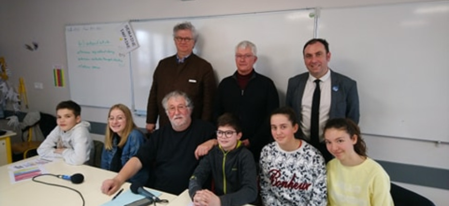 Pendant 30 minutes, Anaé, Mailys, Noé, Marie et Lilian ont posé leurs questions à Xavier Argenton et Jean-Michel Prieur. Ils étaient accompagnés par Jacky Prêt, (par ailleurs intervenant au collège), médiateur de l'émission, et Thomas Moreau à la technique radio.