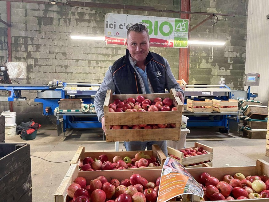 Christophe Prouteau récolte annuellement 150 tonnes de pommes. 50% de ses produits sont vendus en collectivité via mangeons Bio ensemble Poitou-Charentes. L’éleveur est revenu avec nous sur la récolte 2025, marquée par les aléas climatiques entre fortes pluies et canicules. Une récolte qui avait 10 jours d’avance avec une maturité des fruits accélérée. Il explique que les fruits sont de qualité, mais que le calibre, c'est-à-dire la taille et le poids, n’y est pas. Mais il n’a rencontré aucun problème de nuisible comme le puceron. Une récolte que l’agriculteur estime comme moyenne.