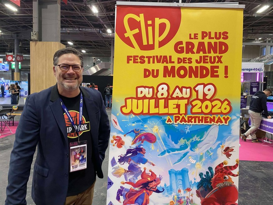 Entre les stands de Nintendo, de PlayStation ou encore d’Xbox, on retrouve un stand avec des oriflammes jaunes et rouges, sur lesquels est écrit quelque chose de familier pour les Gâtinais : « Festival Ludique International de Parthenay ». Car oui, le FLIP est à Paris pour cette semaine de festival du jeu vidéo. Pendant quelques jours, Étienne Delorme, coordinateur du festival et deux animateurs vont permettre aux visiteurs de faire quelques parties de jeux de société entre les parties de jeux vidéo. "On est là premièrement pour faire rayonner le FLIP" commence le coordinateur du festival. "On est aussi là pour discuter avec des partenaires potentiels que l'on n'a pas l'habitude de voir sur d'autres événements".