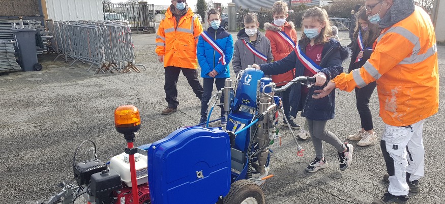 Six élus du conseil municipal des enfants de Parthenay, ont remis ce mardi leur relevé des passages piétons de la capitale de Gâtine dans les mains des services techniques de la Ville. L’ensemble des enfants élus ont noté pas moins de 14 passages à refaire ou à créer, dont trois sur la seule avenue du 114e Régiment-d’infanterie. En plus de la remise de leur relevé, les jeunes élus en herbe en ont profité pour faire le tour du centre technique municipal et voir la machine à tracer des lignes, reçue par les services techniques en juillet 2021 et dont l’achat aura coûté 17 000 euros. Zoé, Clara et Léa sont membres du conseil municipal des enfants de Parthenay, elles reviennent sur ce projet d’inventaire des passages piétons de la Ville.
