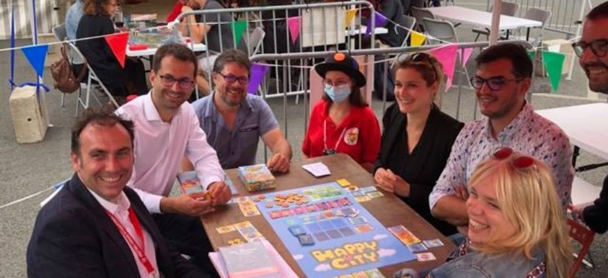 Une délégation poitevine était accueillie ce vendredi 16 juillet sur le FLIP. Réunis sous le stand Divertissement, Jean-Michel Prieur, maire de Parthenay, a dans un premier temps défié Léonoe Moncond’huy, maire de Poitiers, dans une partie d’Happy City, le nouveau jeu de Cocktail Game.