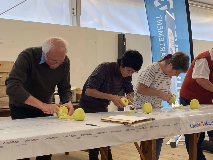 Ils étaient 150 dans le public à regarder avec attention les huit participants éplucher leurs pommes avec délicatesse. Si le public devait d’ailleurs être bousculé pour montrer son enthousiasme, les découpeurs, eux, n’ont pas eu besoin de motivation pour montrer qu’ils savaient y faire.
