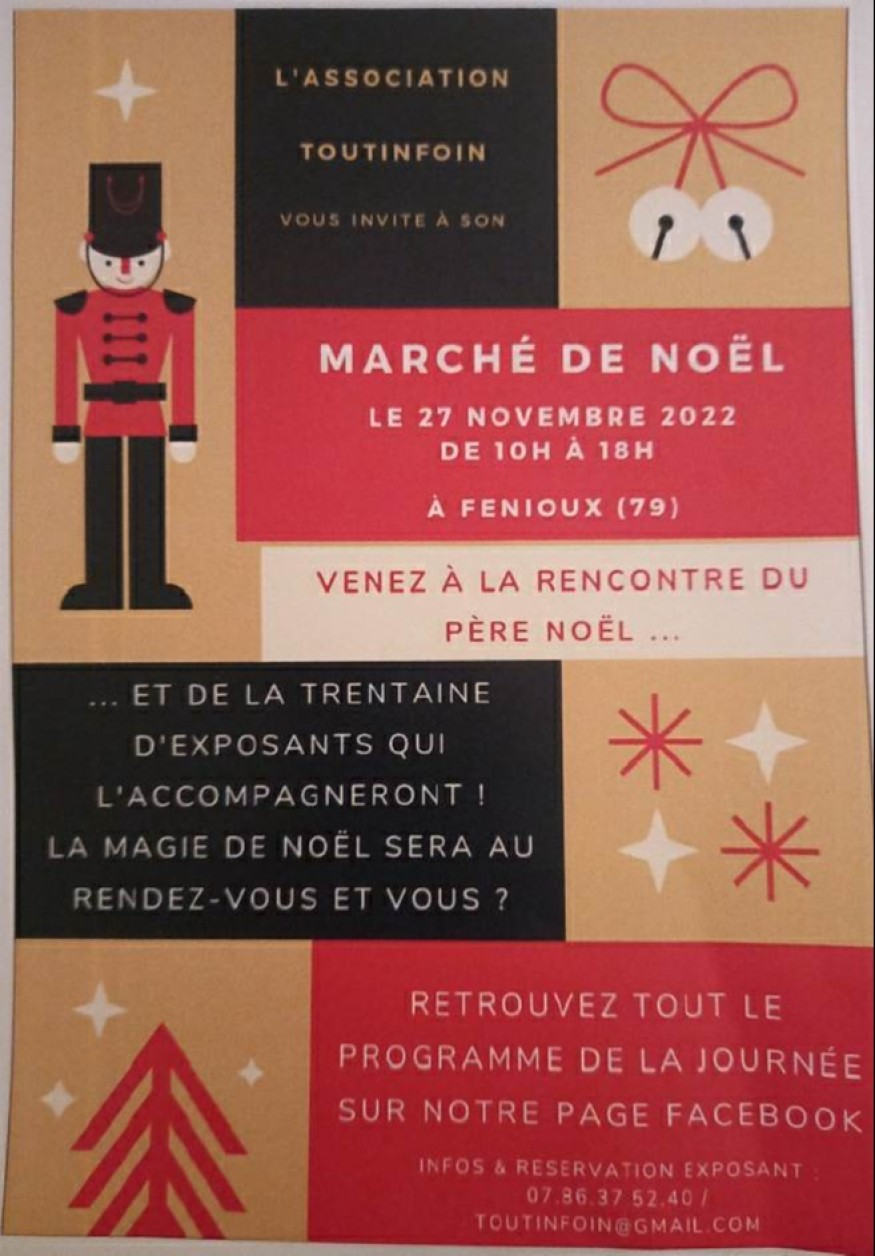 Après avoir été du côté d’Ardin et son marché de Noel dans notre zoom d’hier, direction Fenioux cette fois-ci. L’association Toutinfoin organise pour la première fois son marché de Noël le 27 novembre. Julie Ouvrard, adhérente et bénévole nous explique les motivations qui ont poussé l'association à se lancer dans l'organisation d'un marché de Noel.