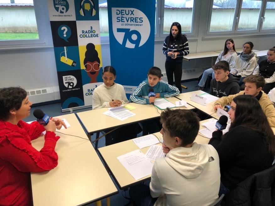 « Radio Collège » sur les bancs du collège de Secondigny. Pour cette émission de janvier, Radio Gâtine a installé ses micros au sein du collège Louis Merle à Secondigny où 6 collégiens se sont prêtés à l'exercice du journalisme radio. Nino, Line, Benjamin, Benoit, Clément et Abigaël, se sont intéressés à l'avenir de leur collège dans le cadre de cette émission intitulée "Questions pour des collégiens" et ont interviewé Coralie Dénoues, présidente du Conseil départemental des Deux-Sèvres. L'émission de 20 minutes invite donc à une immersion dans la vie du collège.