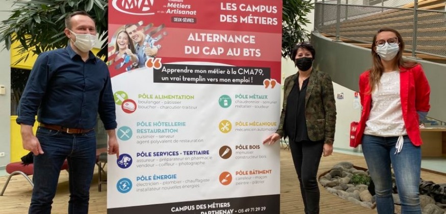 La Chambre de métiers et de l’artisanat des Deux-Sèvres accompagne, depuis bientôt 10 ans, les adultes en reconversion professionnelle. Depuis septembre 2020, elle a été sélectionnée par la région Nouvelle-Aquitaine afin d’assurer des formations de l’habilitation de service public (le HSP, 1er niveau de qualification), à des chercheurs d’emploi sans qualification. Mardi dernier, une journée d’échange dédiée à ce nouveau dispositif était organisée dans les murs du CFA de Parthenay. Rappelons que pas moins de 20 métiers sont proposés dans les CFA de Parthenay et Niort, soit 180 places disponibles dans le cadre de ce dispositif, organisées autour de quatre filières pro. Le point avec Tatiana Schumacher, coordinatrice de la formation continue au sein de la CMA des Deux-Sèvres, et Nathalie Gauthier présidente de la CMA79.
