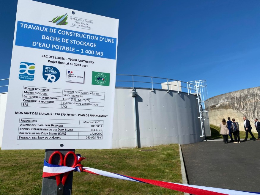 Assurer le transport de l’eau dans la meilleure des conditions, c'est la mission du Syndicat des eaux de Gâtine. Cette dernière vient de mettre en service l'été dernier, une nouvelle bâche de stockage d’eau potable de Parthenay. L'édifice situé dans la zone des Loges à Parthenay, a été officiellement inauguré en fin de semaine dernière. Ce réservoir de 1 400 m3, a été construit juste à côté d'un autre réalisé en 1982 et qui est toujours en fonction. Les explications de Philippe Albert, le président Syndicat des eaux de Gâtine.