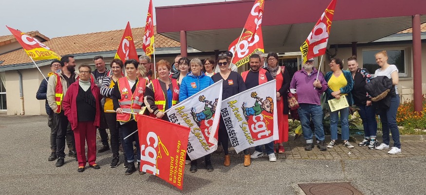 25 personnes, membres de la coordination syndicale départementale de la CGT se sont retrouvés en tout début d’après-midi ce mercredi, devant l’Ehpad des Feuillantines du Tallud. Un rassemblement en soutien à quatre membres du personnel, qui ont crée en février dernier une section syndicale dans l’établissement, et qui depuis, font face à une situation très difficile en interne. Après une heure de rassemblement, Catherine Thibeault, conseillère municipale et vice-présidente du CCAS du Tallud, s’est rendue à l’Ehpad. Elle a reçu pendant une petite heure, à la mairie du Tallud, une délégation de la CGT, accompagnée par deux des quatre salariés concernées par ce conflit. Nous précisons que nous avons tenté de joindre le directeur de l’Ehpad Les Feuillantines à l’issue de cet entretien. Etant indisponible, il n’a pas pu répondre à nos sollicitations. Reportage.