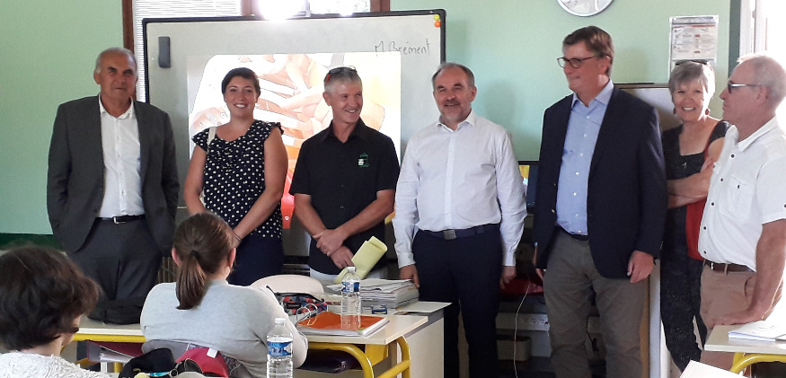 Depuis 1954, la Maison familiale rurale de Frécul à Secondigny est au service de la formation en milieu rural, avec sa formule innovante de l’époque, l’alternance, qui n’a pas vieillit aujourd’hui. L’alternance est devenue aussi un modèle pour l’apprentissage, qui fait aussi son entrée dans l’enseignement des MFR. Le président du Département des Deux-Sèvres, Gilbert Favreau, entouré des responsables de la MFR et des représentants de la Fédération régionale des maisons familiales, ont fait le tour des locaux mardi dernier lors de la rentrée scolaire. Le directeur de l’établissement, Jean-Philippe Gratiot, fait le point sur cette rentrée 2019 au micro de Gérard Baudouin.