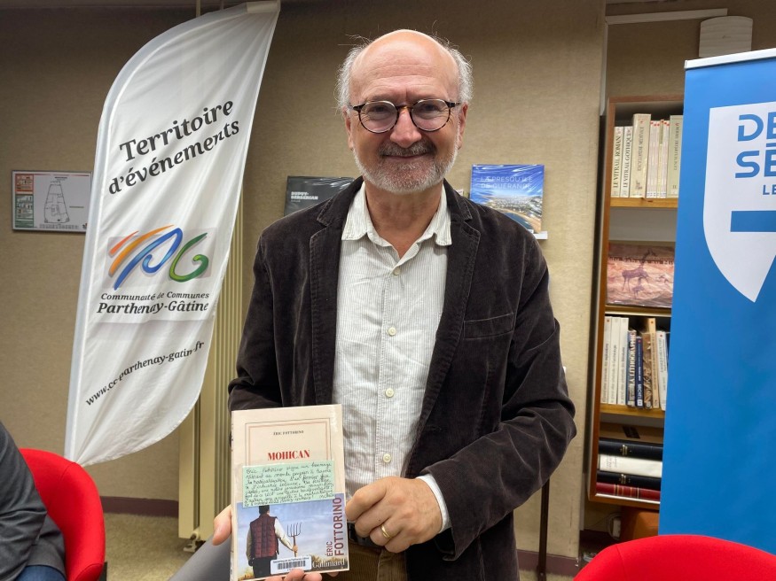 Depuis le 25 septembre, l'opération Terre de lecture(s) est lancée dans les Deux-Sèvres. À cette occasion, la médiathèque de Parthenay a reçu Éric Fottorino, écrivain et journaliste pour parler de son livre "Mohican". La présidente du conseil départemental Coralie Dénoues, ainsi que le maire de Parthenay Jean-Michel Prieur et Jérôme Bacle, En charge des pratiques et apprentissage culturels et sportifs à la communauté de communes Parthenay-Gâtine étaient présent pour un moment d'échange avec l'auteur. C’est Philippe Chauveau, conseiller départemental qui a mené la discussion.