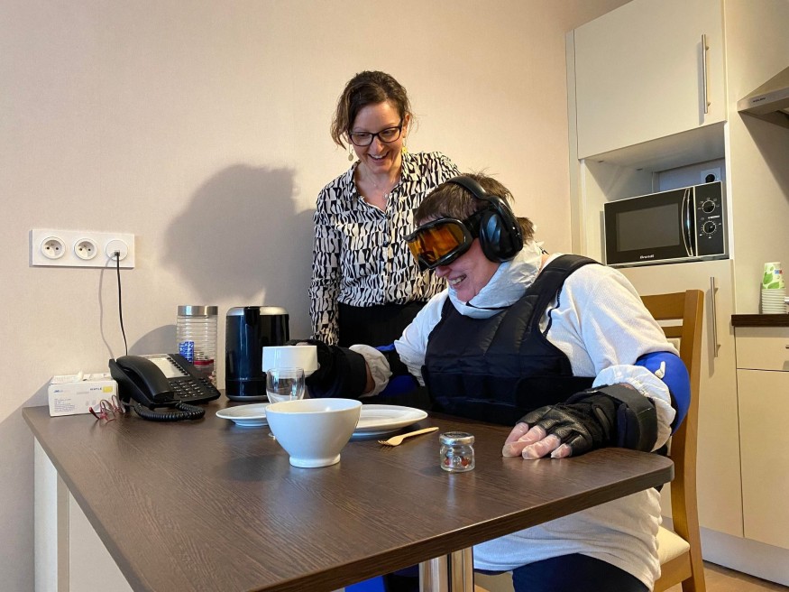 Depuis maintenant quelques semaines, une combinaison est disponible à l'essai à la résidence pour senior de Domitys. Une tenue qui appartient au groupe Domitys et qui se passe de résidence en résidence pour permettre aux professionnels médicaux et paramédicaux ou encore les personnes qui souhaitent essayer de vivre ce que vivent les seniors. Le mercredi 8 mars en fin d'après-midi, plusieurs aidantes de l'ACSAD sont venu tester cette tenue pour découvrir ce que vivent les seniors au quotidien. Explications avec Sophie Le Texier, conseillère commerciale chez Domitys.