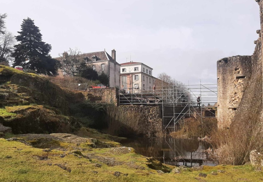 Impossible de remplacer les poutres de chêne de 1994 : elles étaient toutes assemblées en tenon-mortaise, comme des Lego. Depuis le début du mois de février, les ouvriers sont à l’œuvre. Ils enlèvent une à une les planches. La passerelle est essentielle pour relier le château au reste de la Ville. Marie Rivallin, la responsable du service Musée et patrimoine de la Ville, précise que ce pont n’existait pas à l’époque où le château servait d’arme défensive.