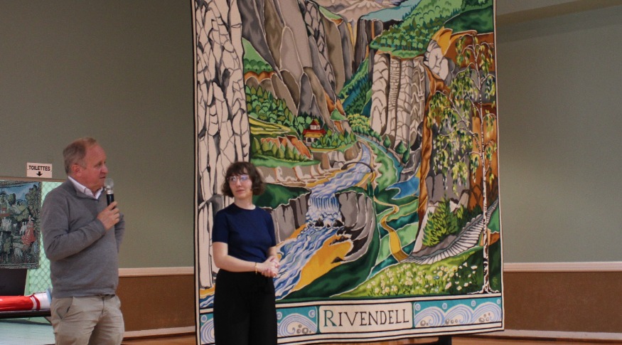 C’était l’un des moments forts de l’événement des Fibres vagabondes, organisé en fin de semaine dernière à Mouton-village à Vasles. Une tapisserie, inspirée de l’univers de J.R.R. Tolkien et venue tout droit de la Cité internationale de la tapisserie d’Aubusson, était exposée dans la salle du Mouton. Pendant l'installation de la tenture, le directeur de cette institution, Emmanuel Gérard, a expliqué les pourquoi et comment de cette fabrication à partir des illustrations de Tolkien, auteur de la saga du « Seigneur des anneaux ». On l’écoute au micro de Marie-Do Couturier.