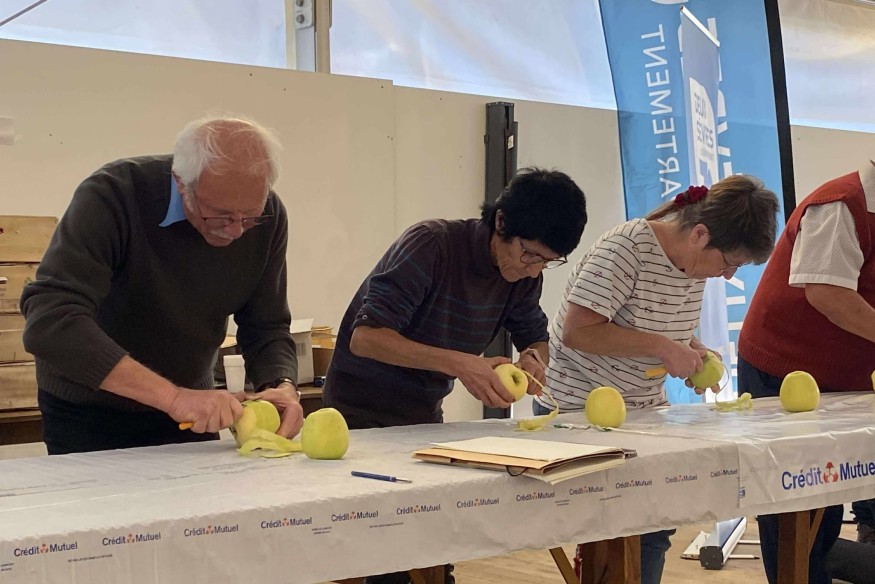 Ils étaient 150 dans le public à regarder avec attention les huit participants éplucher leurs pommes avec délicatesse. Si le public devait d’ailleurs être bousculé pour montrer son enthousiasme, les découpeurs, eux, n’ont pas eu besoin de motivation pour montrer qu’ils savaient y faire.