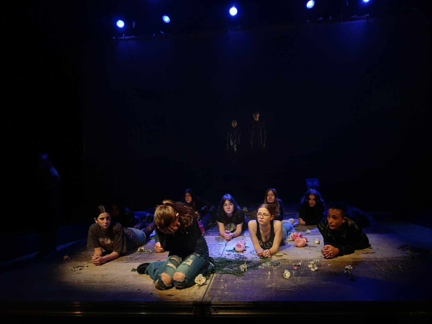 Ils sont allongés sur le plateau. Des jeux de lumières, des roses éparpillées au sol, des airs de musique. Chacun des 14 élèves de l’option théâtre du Marchioux déclame son texte. Cette semaine, les collégiens de 4ᵉ et de 3ᵉ sont en résidence avant leurs représentations de vendredi et samedi. L’amoureuse de Lulu, le personnage principal, décrit la pièce de Magali Mougel, The Lulu Projekt.