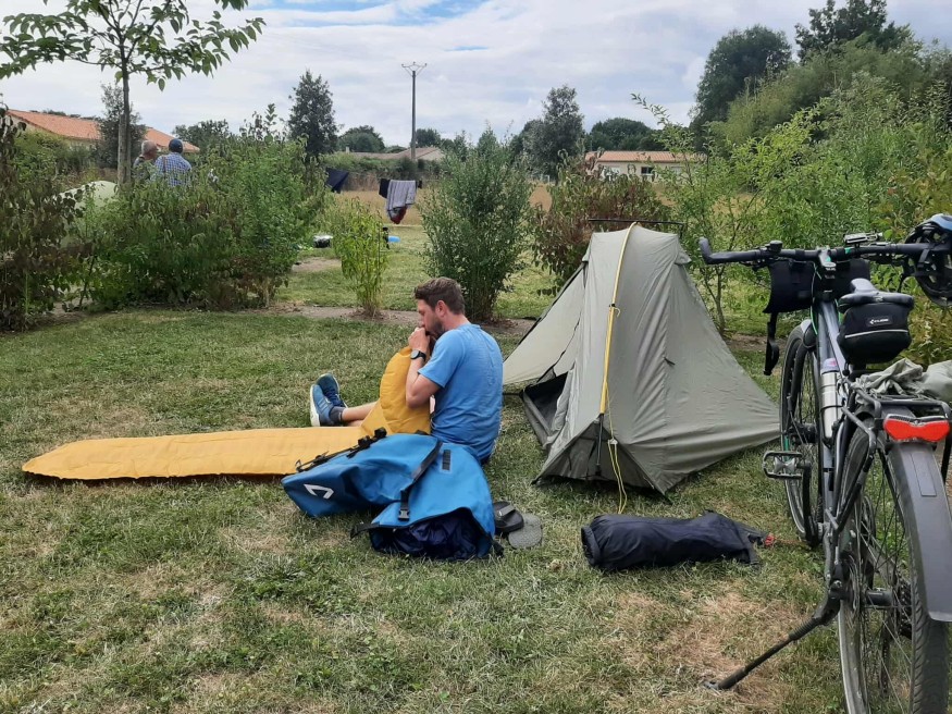 Hubert et sa femme sont des expérimentés du cyclo-camping : Pays-Bas, Angleterre, Écosse, Portugal et les voilà à Saint-Pardoux pour la première fois. Ils sont partis il y a trois jours de la banlieue nantaise. Ils vont à Montauban et passent par plusieurs itinéraires comme la Vélofrancette. Habitués des infrastructures à travers la France, Hubert donne son avis sur l’installation de Saint-Pardoux et sur le cheminement. "On est surpris des installations ici", sourit-il. "C'est sur le chemin qu'on a remarqué que depuis qu'on a passé Angers, les campings sont un peu plus éloignés", précise-t-il.